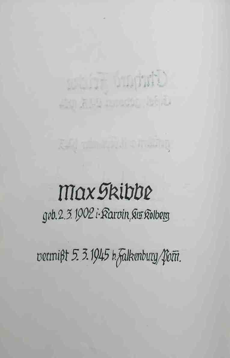 Volksbund Gräbersuche: Dienstgrad: k.A. Geburtsdatum: 02.03.1902 Geburtsort: k.A. Todes-/Vermisstendatum: 01.02.1945 Todes-/Vermisstenort: Dramburg / Falkenburg / Kallies b. Märk.-Friedland / Labes Nach den uns vorliegenden Informationen ist die o.g. Person seit 01.02.1945 vermißt.