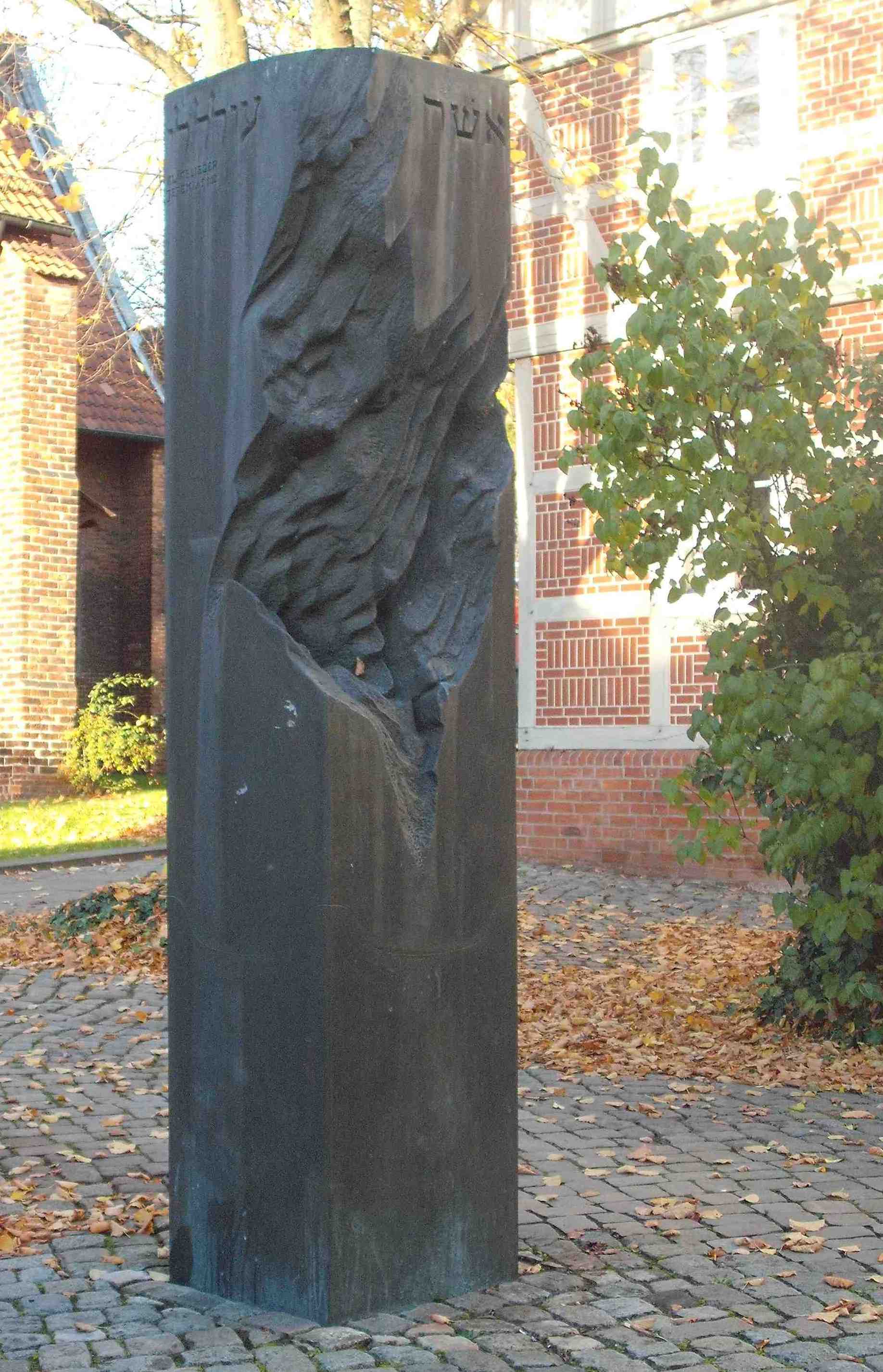 In hebräischer Sprache ist oben an den Seiten des Mahnmals eine Inschrift